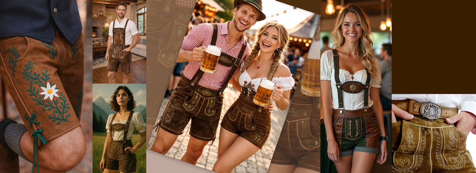 Our product range includes finely tailored lederhosen, dirndls, Bavarian shorts, traditional shirts, blouses, and custom-made festival outfits. Every garment is produced using high-quality fabrics and genuine leather, ensuring durability, comfort, and elegant finishing.