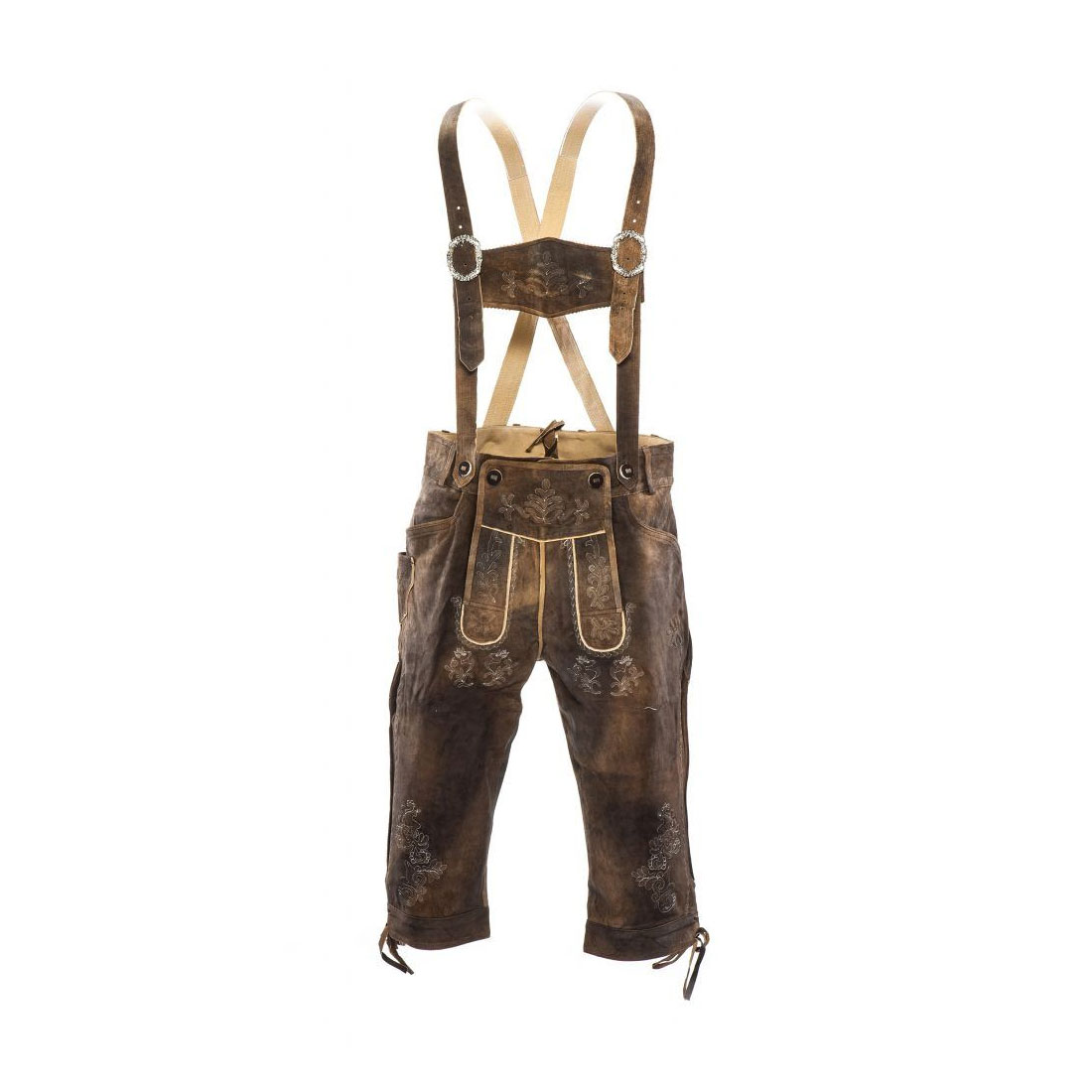 100% Real leather handmade. This Lederhosen Knee Shorts made by hand can have small different shapes. The dark color ensures that this is a unique combination that is unique to all overshirts.