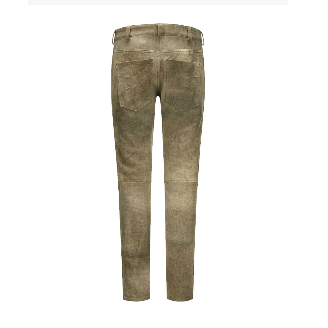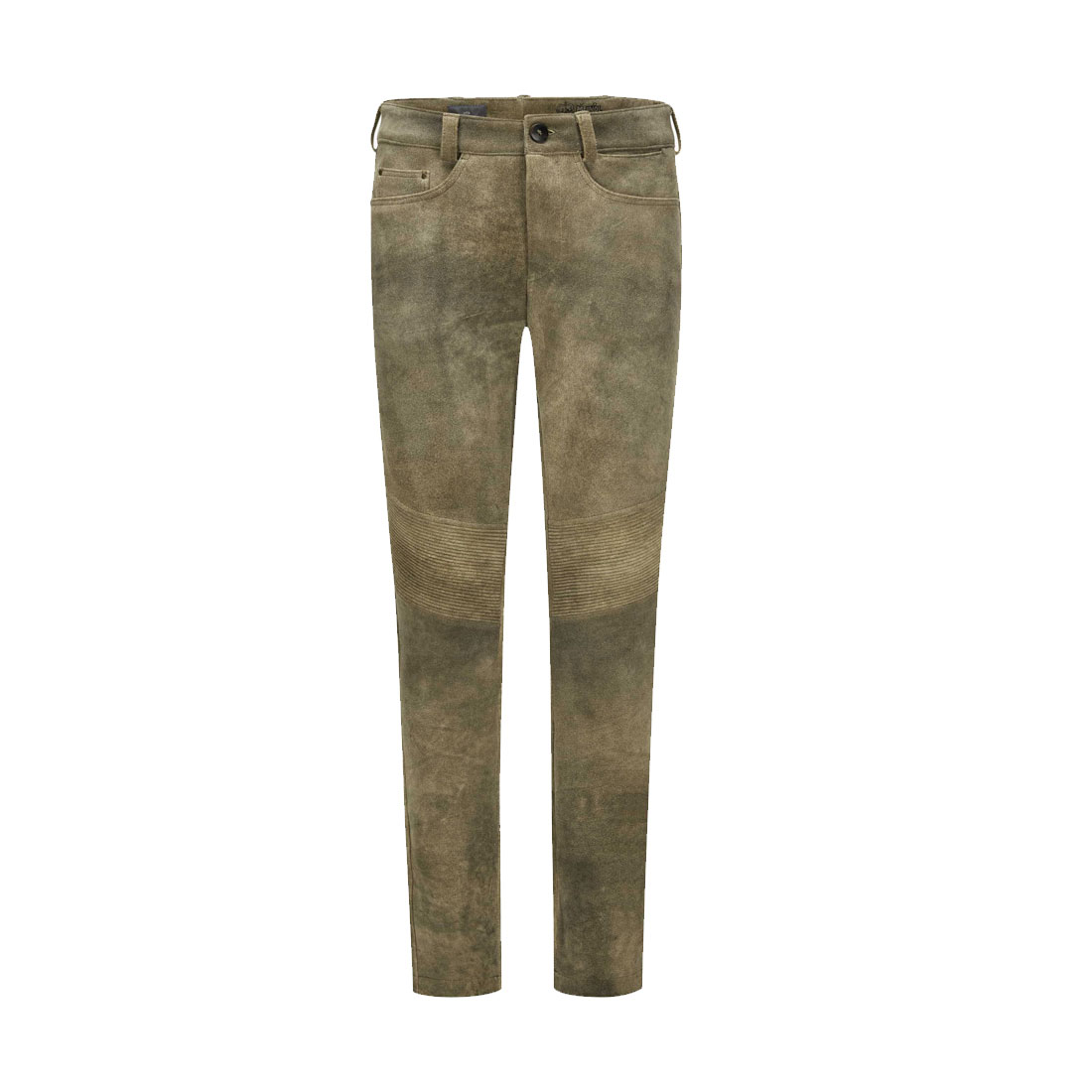 Made of high-quality Real leather and with a straight cut inspires the rustic model of the traditional label. Fashionable decorative stitching on the knees and the natural coloring complement the Design skillfully.