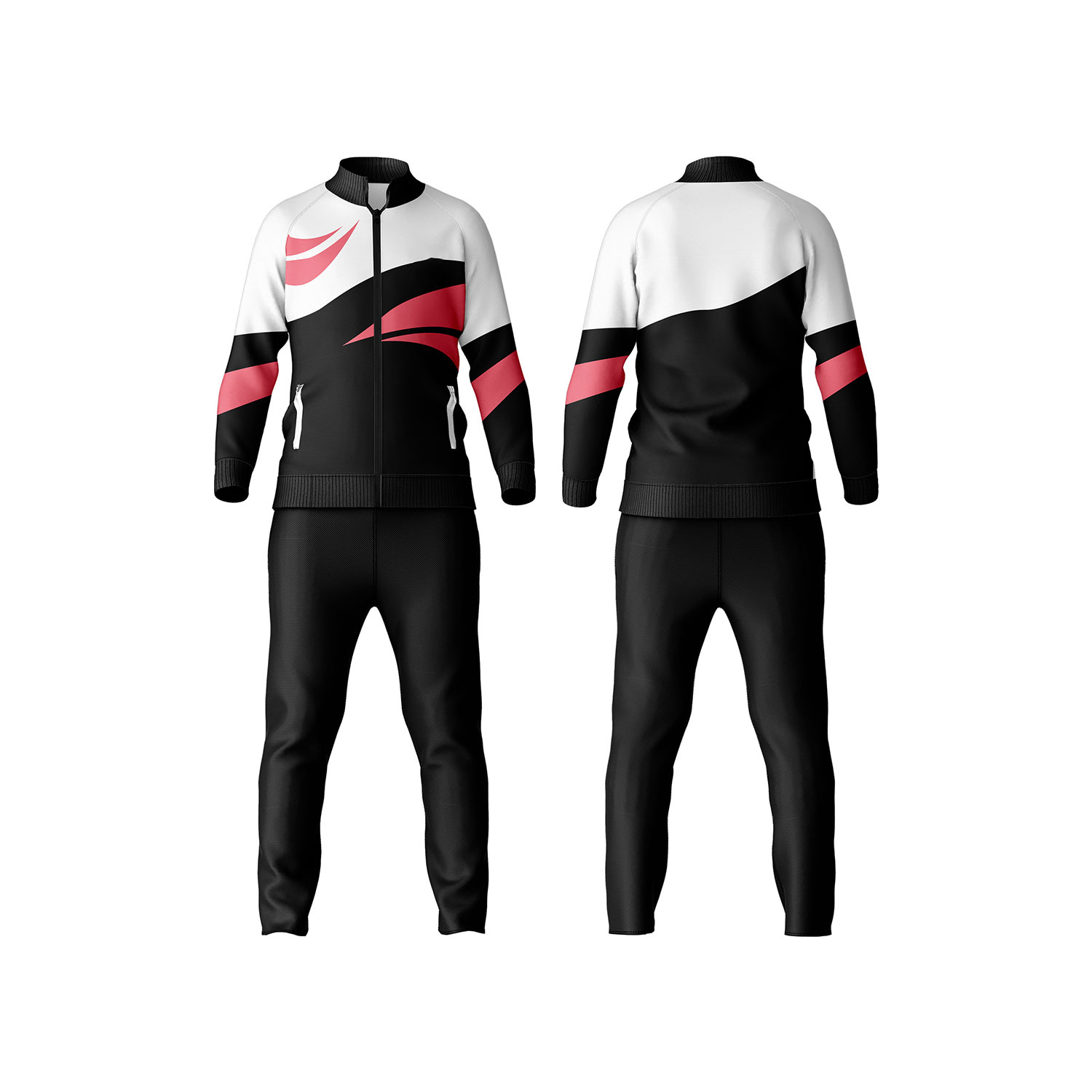 Customizable track suit suitable for team uniforms, school sports, clubs, and corporate branding. Available with logo printing or embroidery for personalized identity.